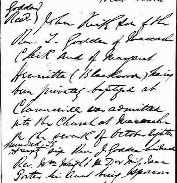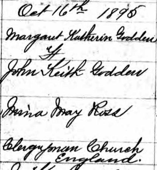 daughter Margaret Henrietta married Rev Thomas Godden my mother and father respectively, the said Rev. Daniel Keith