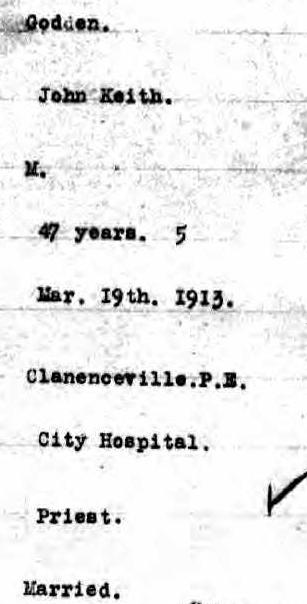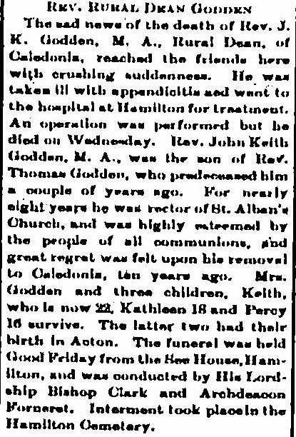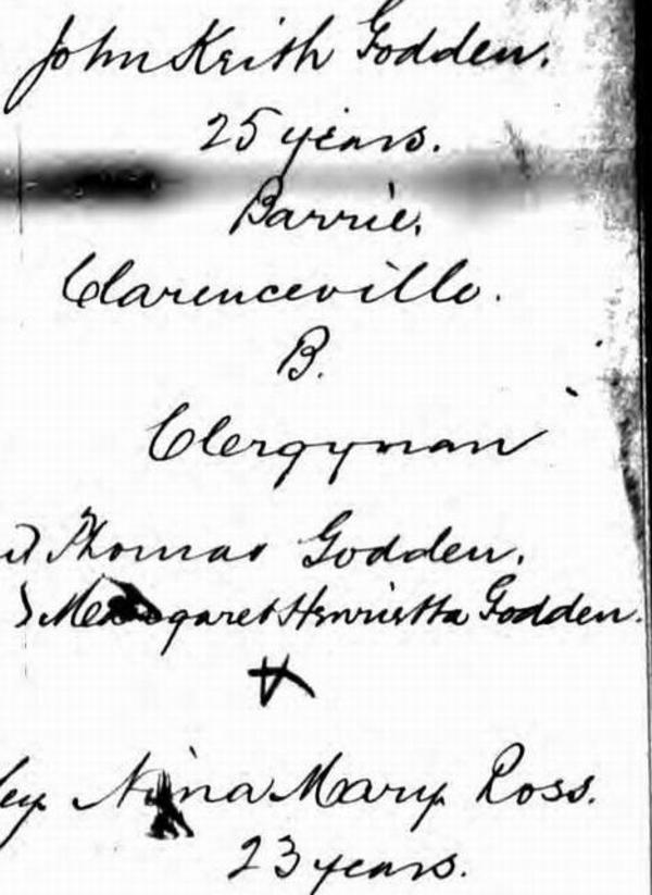 name in full is Rev. John Keith Godden m.a. a graduate of Trinity University, Toronto. On Wed. last I called to