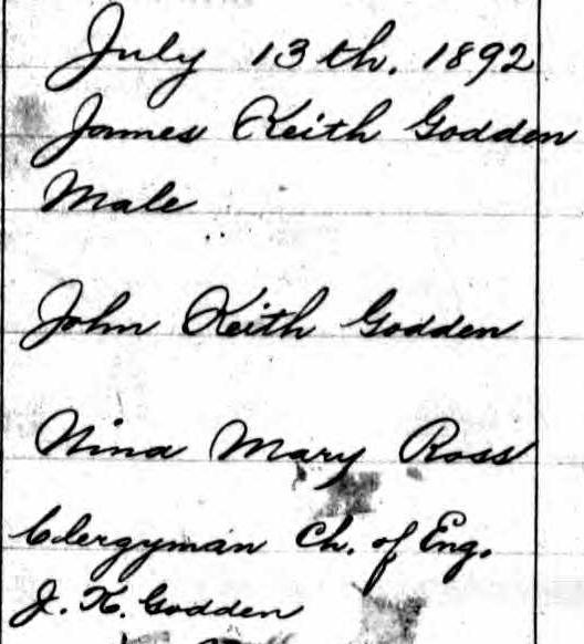 Godden M.A. His grand-father the Rev. Dr Daniel KEITH D.D. had spent time in Canada and had returned to Britain where he was awarded his
