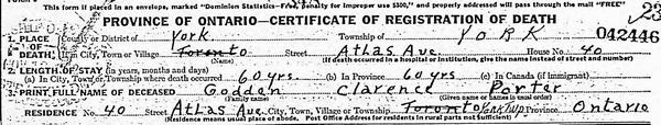 Clarence Porter GODDEN was born 3 August 1864 at Clarenceville, Quebec. (This is also the location given on his death record as
