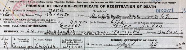 buried at St James Cemetery, Toronto together with their infant daughters Marion and Miriam.