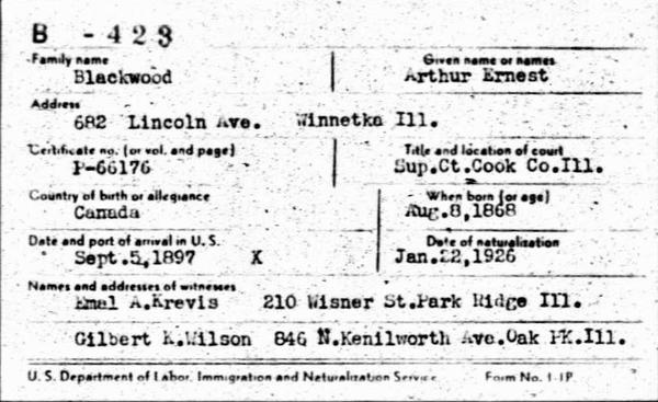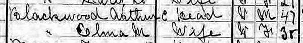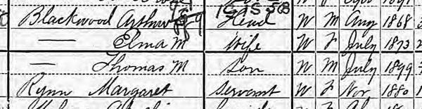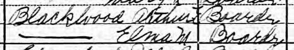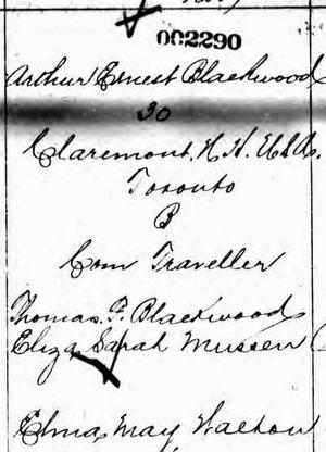 Arthur Ernest BLACKWOODArthur was born in Toronto on 8 August 1868. He is recorded in the 1871 and 1881 censuses with his parents. In 1891 Arthur and his brother Charles are living with Robert Montgomery and family in York East. Robert was a bank manager. Arthur was a "Wholesale hardware merchant" and Charles a "Machinery Broker".