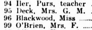 She is recorded in the electoral rolls through the 1930s to 1950s. She is in the 1958 roll (Rosedale Polling Division 96) at 96 South Drive but in the 1962 roll that address has new occupants.