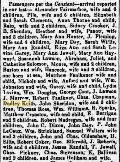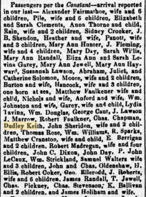 was Dudley KEITH who had a dying wife and two small children. Mary KEITH died in April 1864. It is not surprising that