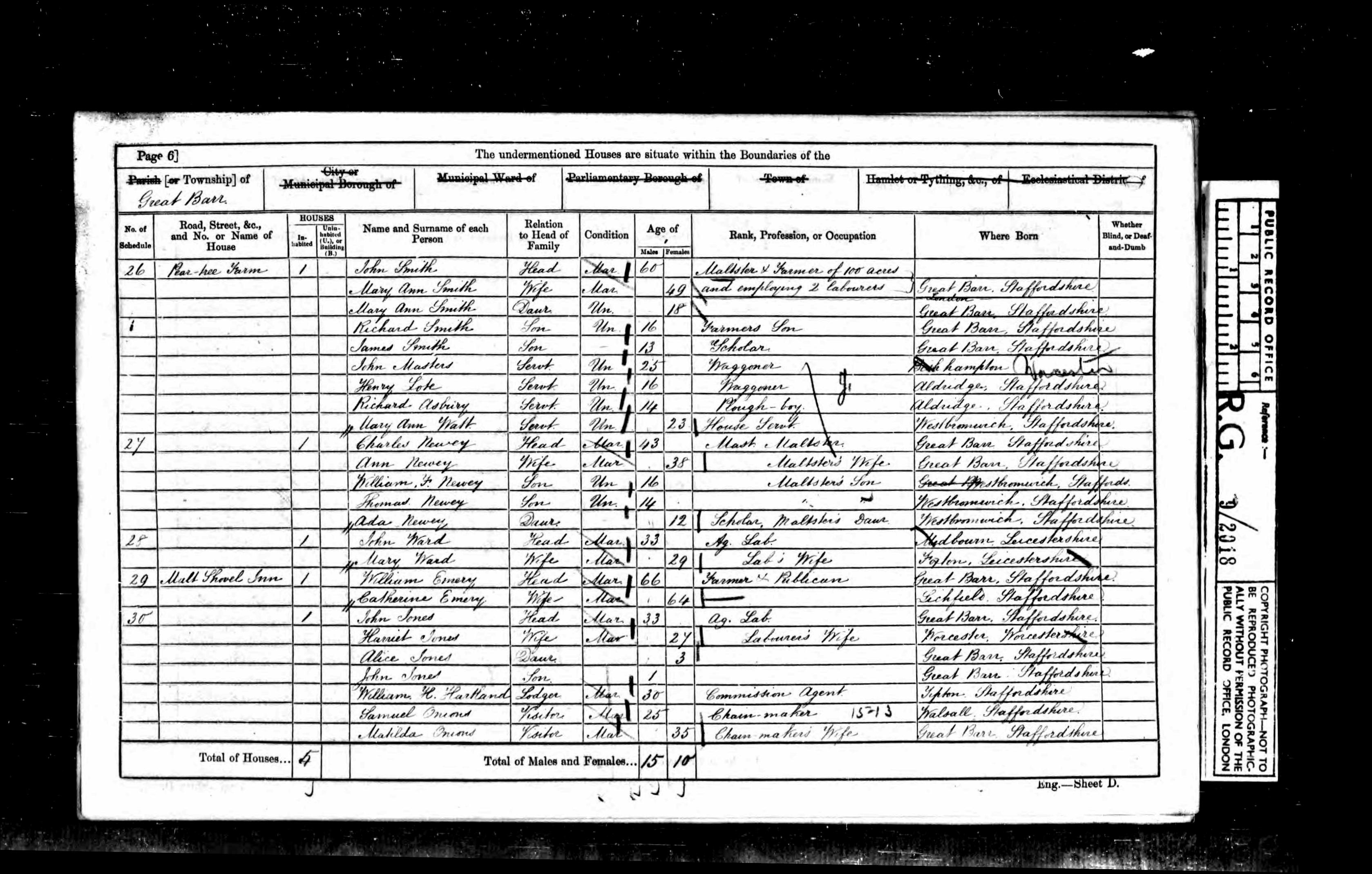 The family were recorded in the 1861 census living near the Malt Shovel Inn, on Newton Road, Great Barr. John was