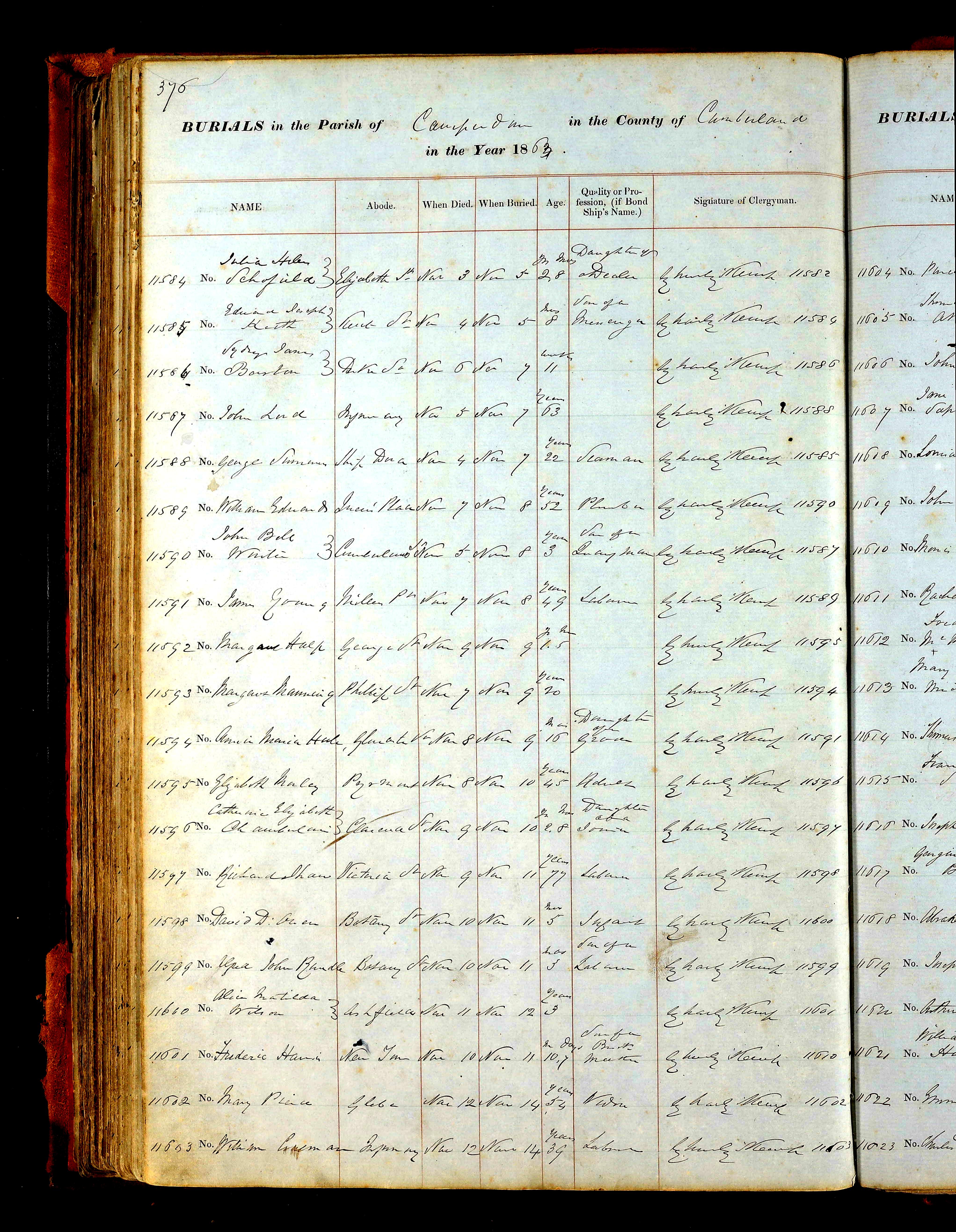 buried on 5 November 1863 at Newton St Stephens. Note Dudley's occupation at the time was "messenger".