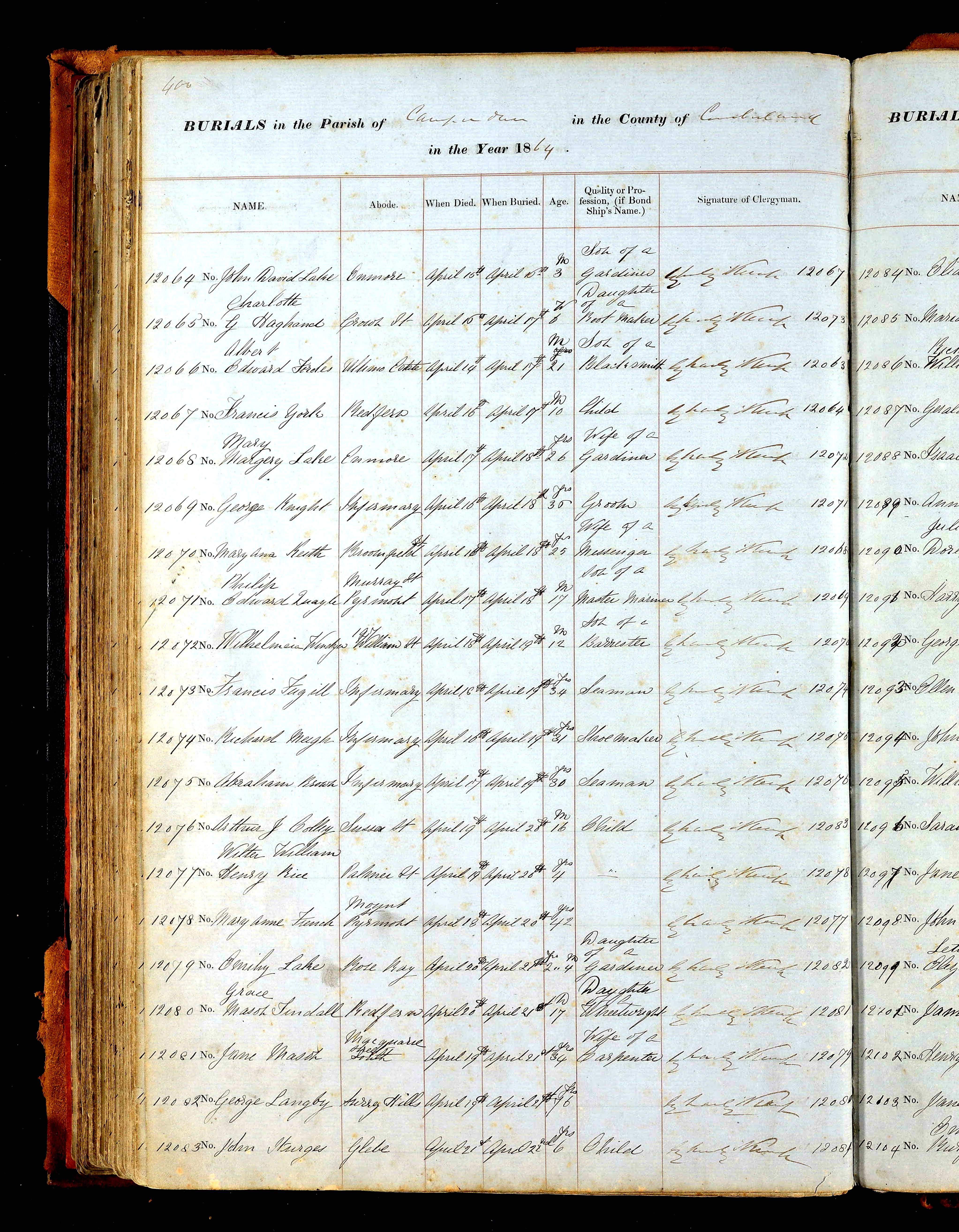 Burial record, Newton St Stephens, Camperdown, Sydney. |