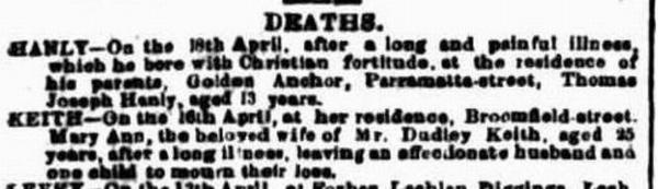 Clara and Thomas had two children (Henry Keith MILROY born 1890 died 14 May 1910 at 77 Gerard St, Alexandria, NSW) and