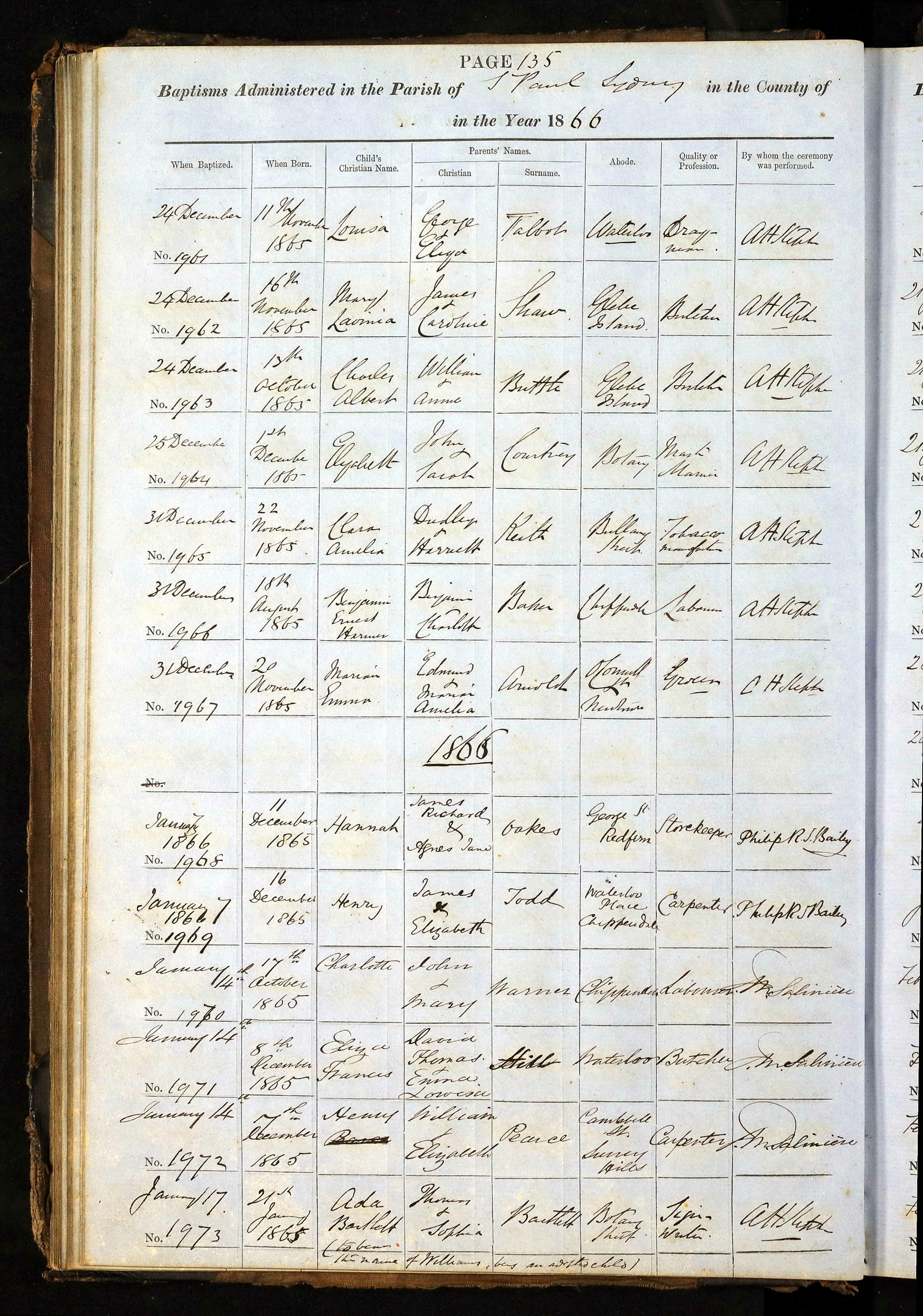 Dudley and Harriett had one child, Clara Amelia who was baptised at Cleveland Street St Paul on 31 December 1865.