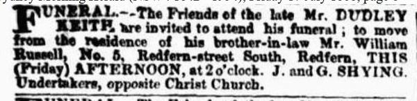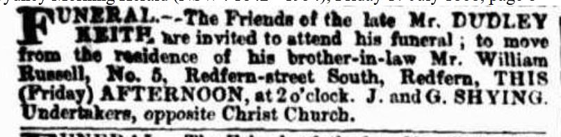 RUSSELL. (When Dudley died a few years later, the newspaper advised the funeral would leave from the house of William