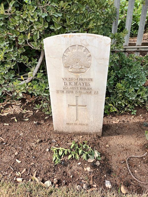 there was also Dudley Keith HAYES as he served in the Australian Army and was killied in Syria in 1941. The war record