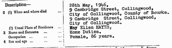 Mary Ellen also adopted the HAYES surname. Mary does not appear again in the records until her death on 28 May 1946