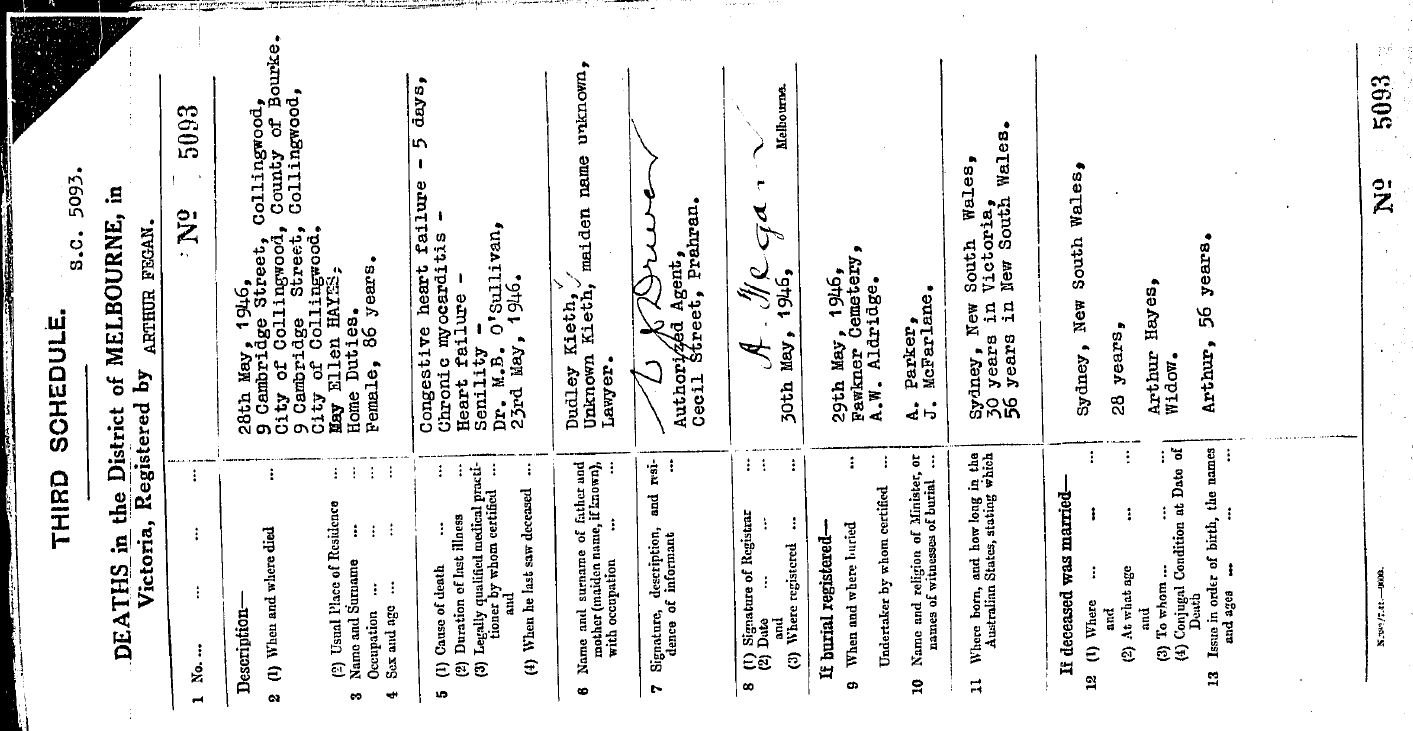 1946 death certificate for Mary Ellen KEITH/HAYES. |